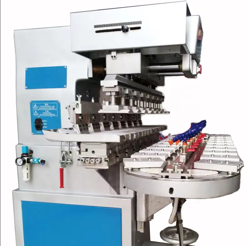 Máy in pad nhiều màu có bàn xoay 16 trạm bán tự động được thiết kế để in trên các bề mặt phẳng và cong như nhựa, kim loại, gốm sứ, thủy tinh và nhiều vật liệu khác. Với công nghệ pad printing (in pad), máy này sử dụng một tampon silicone để chuyển hình ảnh từ khuôn in sang sản phẩm. Tampon silicone có khả năng linh hoạt và đàn hồi, giúp in chính xác lên các bề mặt không phẳng.